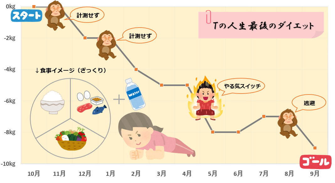 Tの人生最後のダイエットはひとまず終わりにしたいと思います。